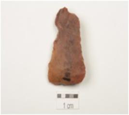 | Description / विवरण | A blade with a mid ridge on the dorsal surface, triangular cross section and wear marks along the cutting edges. |