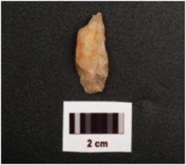 | Description / विवरण | A scraper with flake scars on dorsal side, diffused bulb on ventral side and prepared platform. |