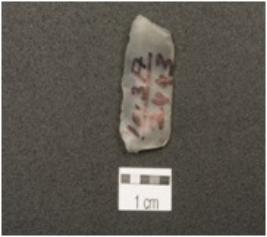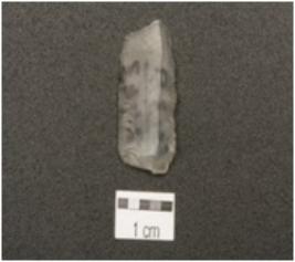 | Description / विवरण | A blade has triangular cross section, wear marks along the cutting edges ,blade marks and prominent bulb on ventral side. |