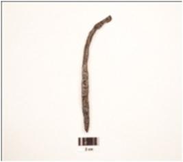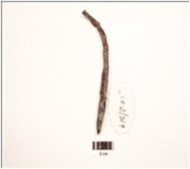 | Description / विवरण | An iron nail, bent from bottom end, rectangular section, uneven surface. |