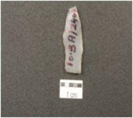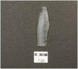 | Description / विवरण | A blade with a mid ridge, triangular cross section, wear marks along the cutting edges and prominent bulb on ventral side. |