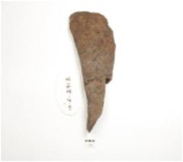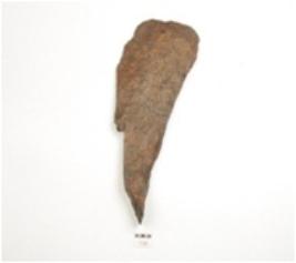 | Description / विवरण | Fragment of iron knife, handle missing, broad along one side and blunt cutting edge on the other side. |
