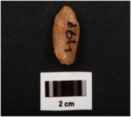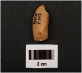 | Description / विवरण | A flake made on quartz stone, cream in colour, flake scars on surface and smooth surface. |