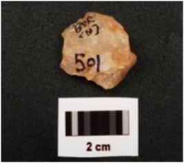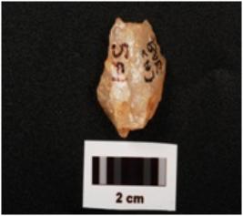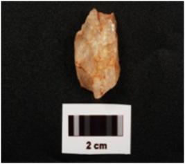 | Description / विवरण | A scraper with flake scars on dorsal irregular surface side, prepared platform and use wear marks on cutting edge. |