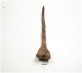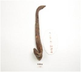 | Description / विवरण | An iron nail, broad along one end with a perforation and pointed along other end. |