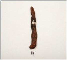 | Description / विवरण | Iron nail with uneven and rough surface, broad and thick from one end, slightly broken from other end, broken and mended. |