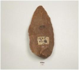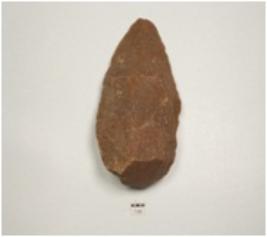 | Description / विवरण | A scraper with flake scars on dorsal side, prepared platform, diffused bulb on ventral side and use wear marks on cutting edge. |