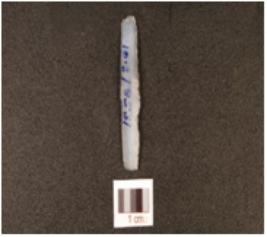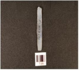 | Description / विवरण | A blade made of chalcedony, flake scars on the dorsal diffused bulb on the ventral and partly retouching on the cutting edges. |