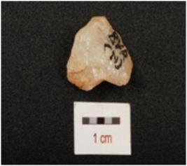 | Description / विवरण | A flake made on quartz stone, flake scars on surface and smooth surface. |