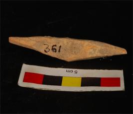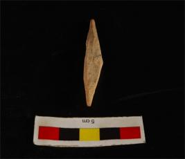 | Description / विवरण | Bone point with slightly broken tip ends. Well polished, mud incrustation on surface and cream in colour. |