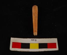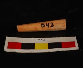 | Description / विवरण | Fragment of a bone point with slightly missing tip. Well polished and circular in section. Cream in colour. |