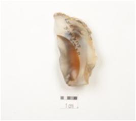 | Description / विवरण | A burin with blade scars and slightly curved pointed end. |