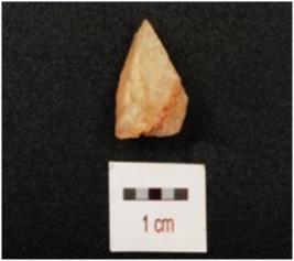 | Description / विवरण | A flake made on quartz stone, flake scars on surface and smooth surface. |