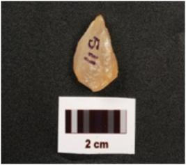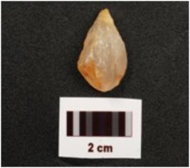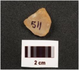 | Description / विवरण | A flake made on quartz stone, flake scars on surface, irregular and smooth surface. |