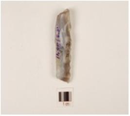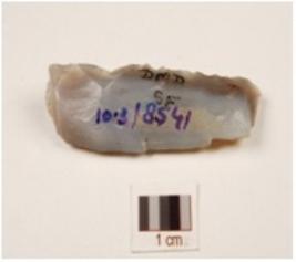 | Description / विवरण | A core made of chalcedony, 3 blade scars on the surface, prepared platform on the proximal end. |