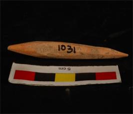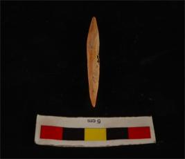 | Description / विवरण | Bone point with pointed one end and another slightly broken tip end. Well polished and cream in colour. |