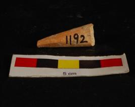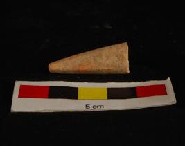 | Description / विवरण | Fragment of a bone point, conical in shape and rectangular in section, well polished and smooth surface, slightly broken tip creamish in colour. |
