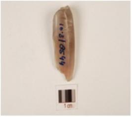 | Description / विवरण | A fluted core made of chalcedony with 6 blade scars, cortex on surface and prepared platform on the proximal end. |