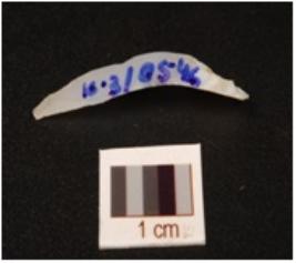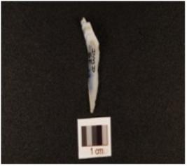 | Description / विवरण | A blade made of chalcedony, flake scars on the dorsal and partly retouching on the cutting edges. |