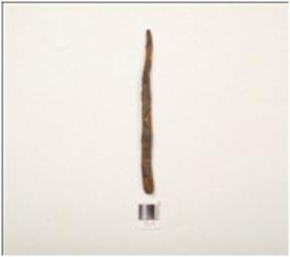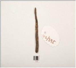 | Description / विवरण | A nail made of iron one end is pointed and other end is thick and broad rectangular in cross section rusted surface and chemically treated. |
