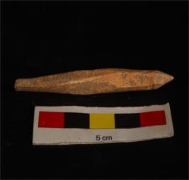 | Description / विवरण | Bone knitting needle with lower portion broken, only one end pointed, well polished, circular in section. |