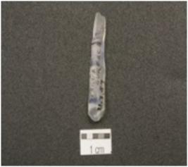 | Description / विवरण | A blade made on end struck quartzite flake, flake scars on dorsal side, bulb of percussion on ventral side, prepared platform on proximal end and partly retouch cutting edges. |