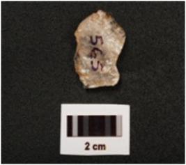 | Description / विवरण | Side scraper made on quartz with chipped off working edge,striking platform and flake scars on surface. |