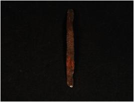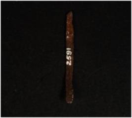 | Description / विवरण | Copper made chised in long shaped with previous conservation work in done. |