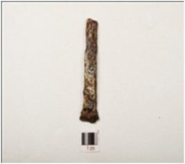 | Description / विवरण | A nail made of iron, rectangular in cross section, rusted surface and chemically treated one end is broad and other end is pointed and partly broken. |
