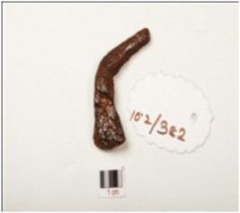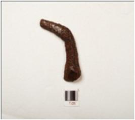 | Description / विवरण | A bended nail made of iron one end is pointed and other end is broad rusted surface and chemically treated circular cross section. |