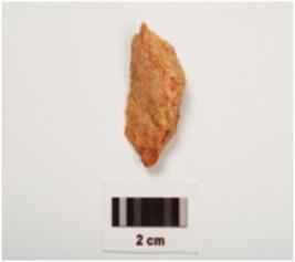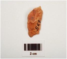 | Description / विवरण | Side scraper made on chert with sharp working edge, striking platform positive bulb near striking platform and flake scars on surface. |