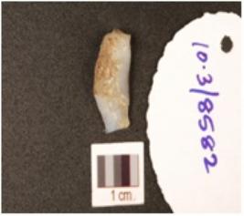 | Description / विवरण | A fluted chalcedony core, having five blade scars. |
