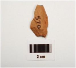 | Description / विवरण | Side scraper, made of chert with chipped off working edge and flake scars visible on surface. |