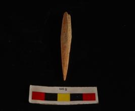 | Description / विवरण | Bone point. Long narrow having points at one end. Rectangular in section and well polished. Cream in colour. Slightly one end broken. |