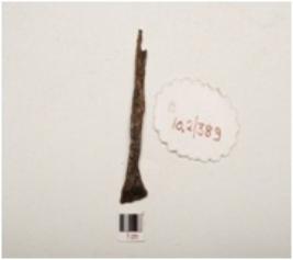 | Description / विवरण | A nail made of iron, elongeted body, flat broad at one end, broken at other end, rectangular in section. |