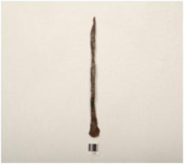 | Description / विवरण | A nail made of iron, elongeted body, flat broad one end, pointed other end, chemically treated surface, rectangular in section. |