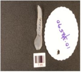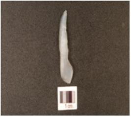 | Description / विवरण | A blade made of chalcedony with ridge on dorsal and use-wear on edges. |