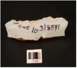 | Description / विवरण | A chalcedony core with six blade scars on surface, smooth surface and cortex visible. |