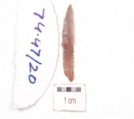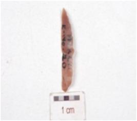 | Description / विवरण | A knife shape blade made on chert, mid ridge on dorsal side, diffused bulb on ventral side and use wear marks on edges. |