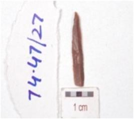 | Description / विवरण | A blade mid ridge on dorsal side, diffused bulb on ventral side and use wear marks on edges. |