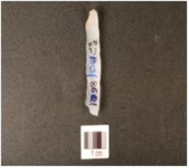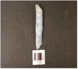| Description / विवरण | A chalcedony blade with use wear marks along the cutting edge, broken from both ends, single ridge on dorsal and triangular cross section. |