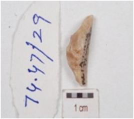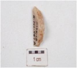 | Description / विवरण | A burin made on chert, mid ridge on ventral side and use wear marks on edges. |