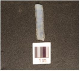 | Description / विवरण | A chalcedony blade with prepared platform, trapezoidal cross section and use-wear marks along the cutting edge. |