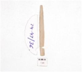 | Description / विवरण | A blade made on chert, double ridge on dorsal side, diffused bulb on ventral side and use wear marks on edges. |