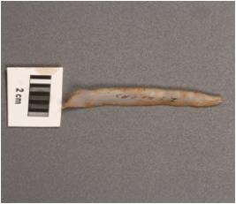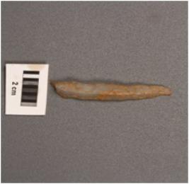 | Description / विवरण | Pen knife chalcedony blade with mid ridge on dorsal side and defused bulb on ventral side along with proximal end, use wear marks on surface. |