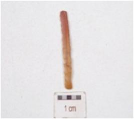 | Description / विवरण | A blade made on chert, mid-ridge on ventral side and use wear marks on edges. |