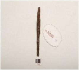 | Description / विवरण | A nail made of iron, elongated body, broken at both ends slightly damaged surface rectangular in section, chemically treated. |