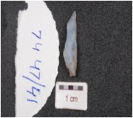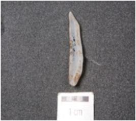| Description / विवरण | A knife shape blade made on chalcedony, mid ridge on dorsal side, diffused bulb on ventral and use wear marks on edges. |