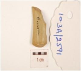 | Description / विवरण | A lunate with one convex lateral side with baking other concave sharp lateral with traces of use-wear marks. |