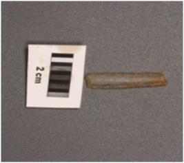 | Description / विवरण | Chalcedony parallel sided microlithic blade with a ridge, triangular section, bblade scars on dorsal surface. |